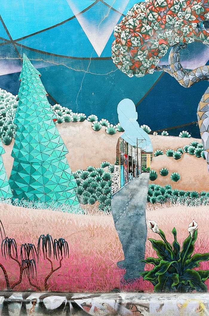The murals covering The Women’s Building are so beautiful. Below is my favourite piece of graffiti I saw that day. I love the colours and the interaction between the layers.